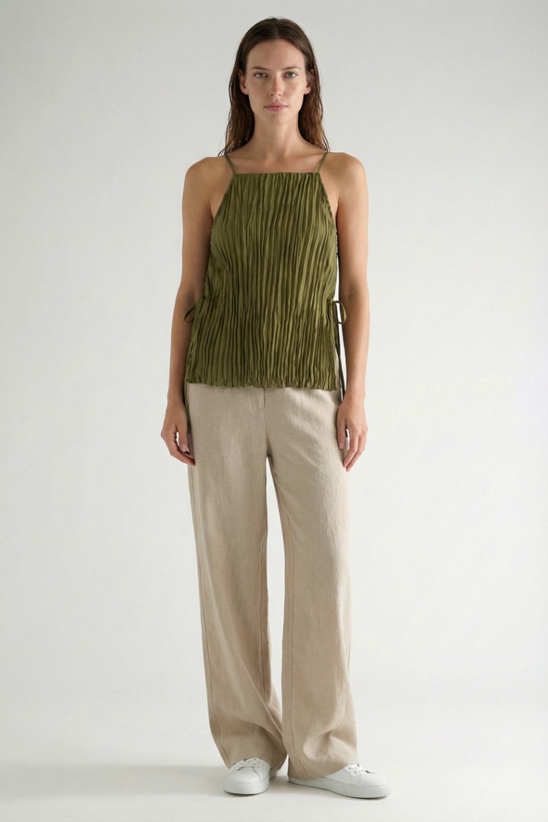 Top plissado em seda.