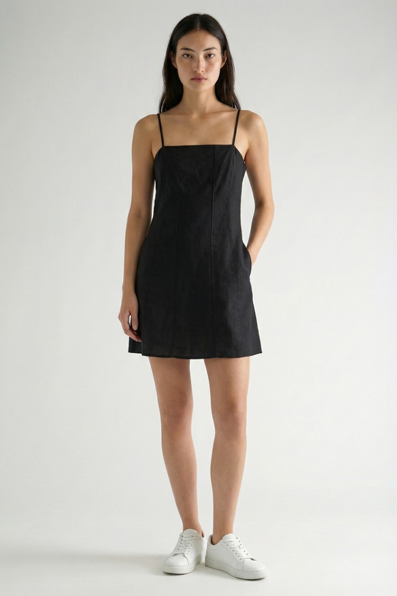 Vestido estilo patinadora em linho - Preto