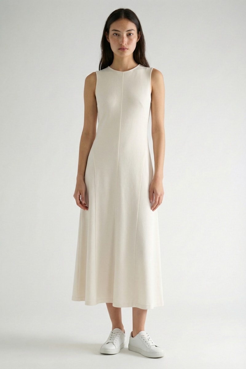 Vestido comprido sem mangas.