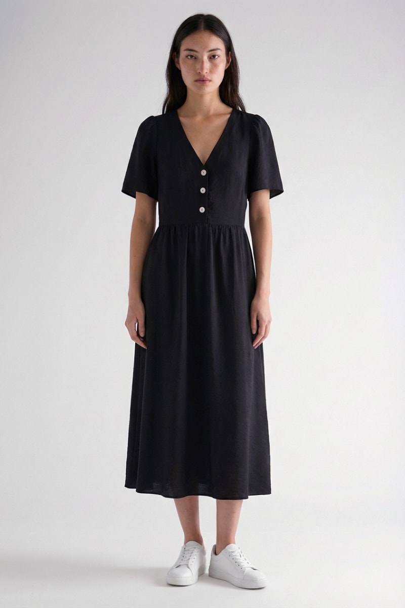 Vestido midi de mangas curtas.