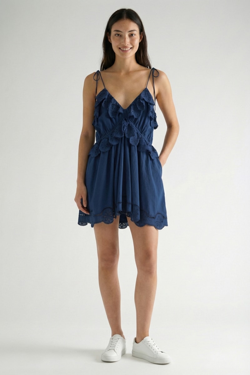 Vestido estilo patinadora em bordado inglês - Azul-marinho