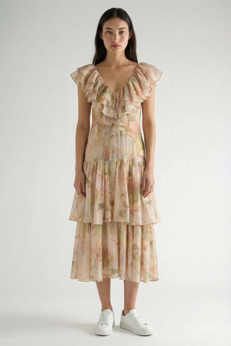 Vestido com folhos.