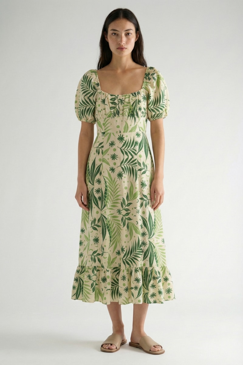 Vestido midi em linho - Verde