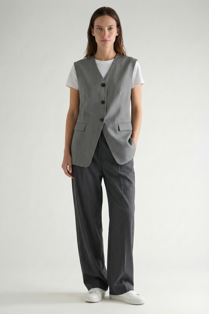 Colete de fato em lã - Cinzento