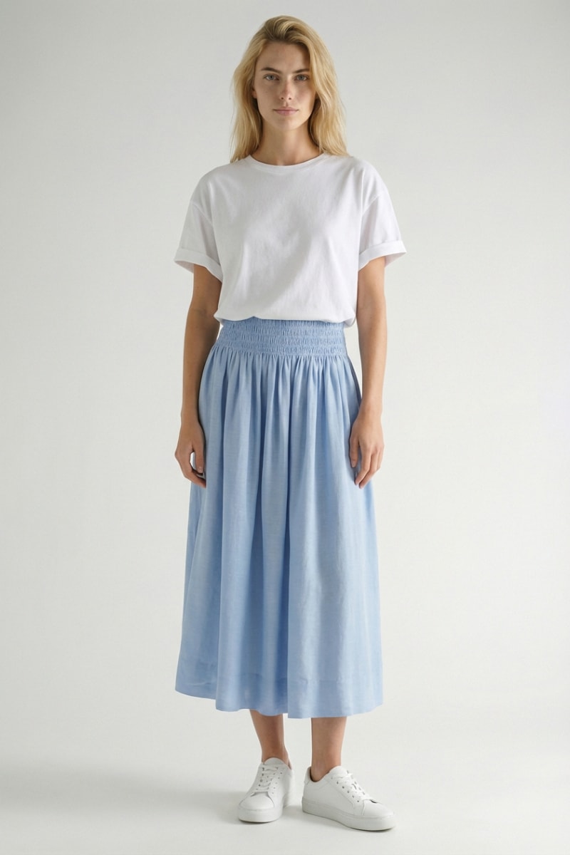 Saia midi de cintura alta em linho - Azul-claro