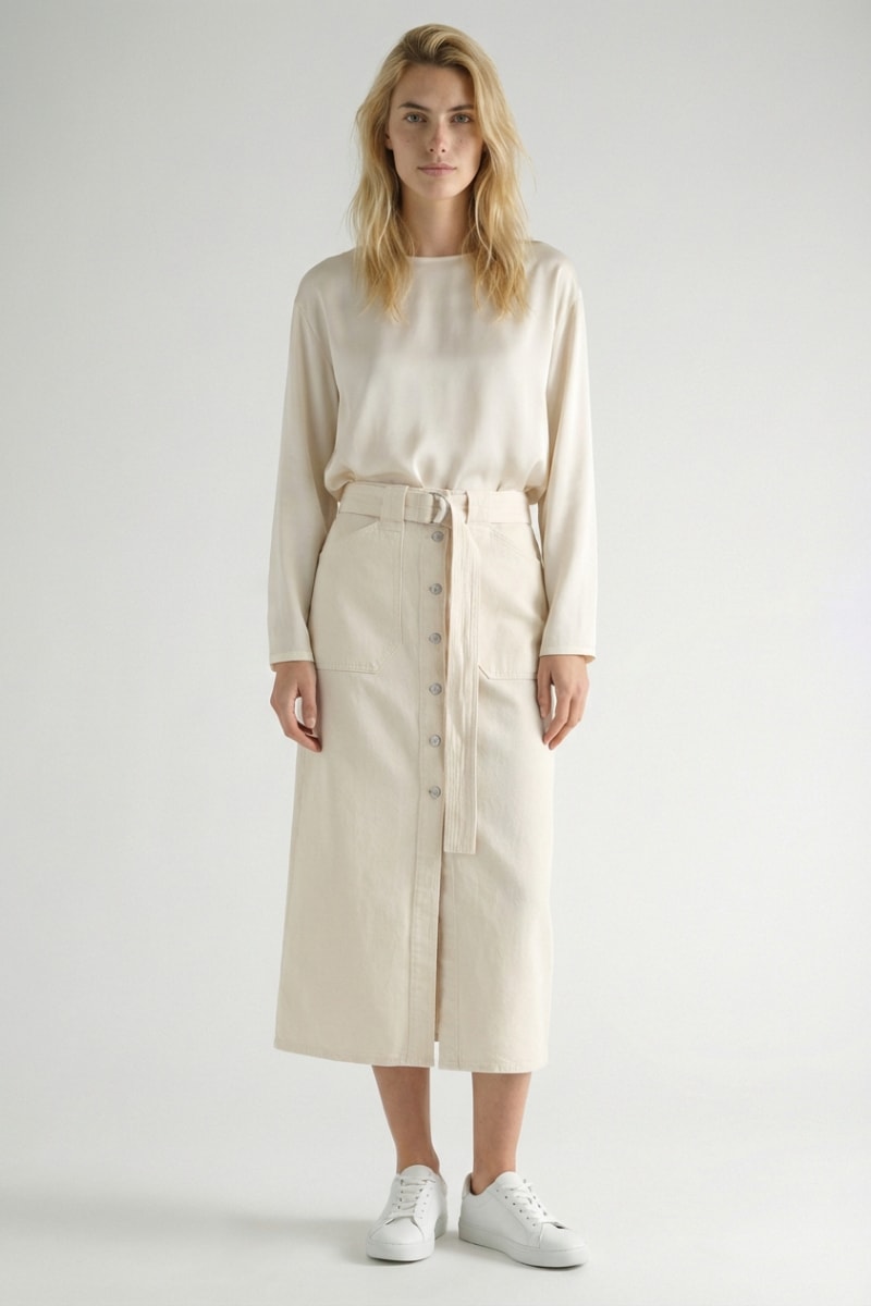 Saia direita de cintura alta - Branco