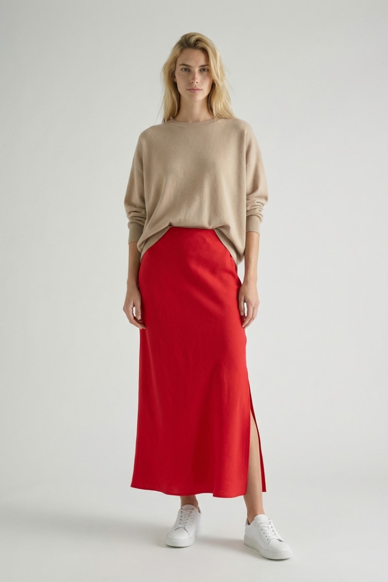 Saia comprido em linho - Vermelho