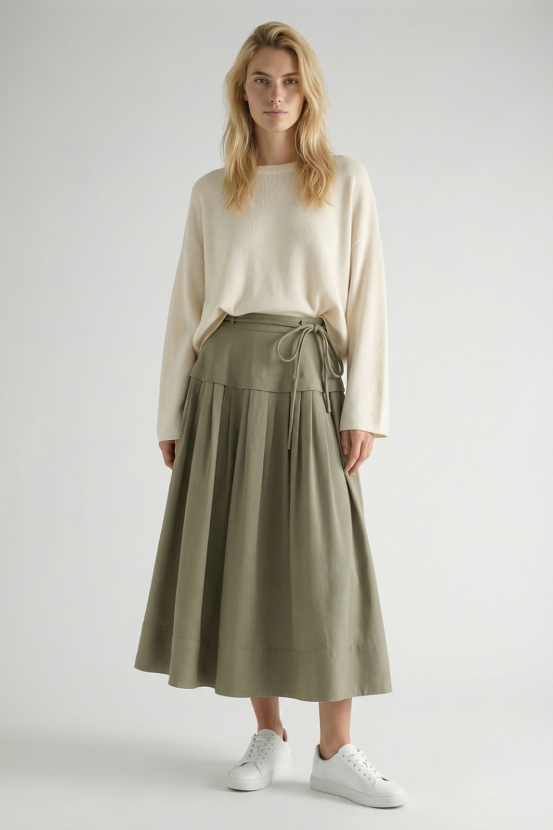 Saia comprida de cintura subida - Caqui