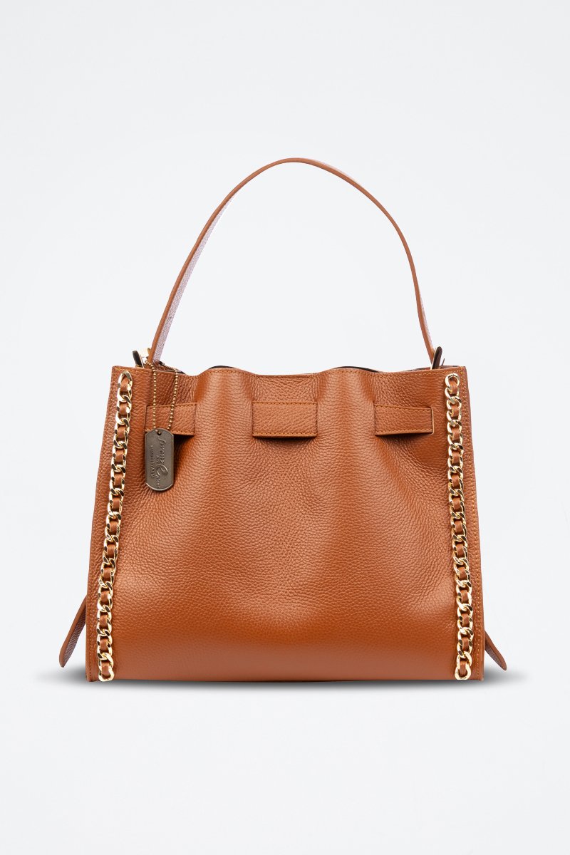 Mala de ombro de couro Barano - Camel - Castanho e dourado