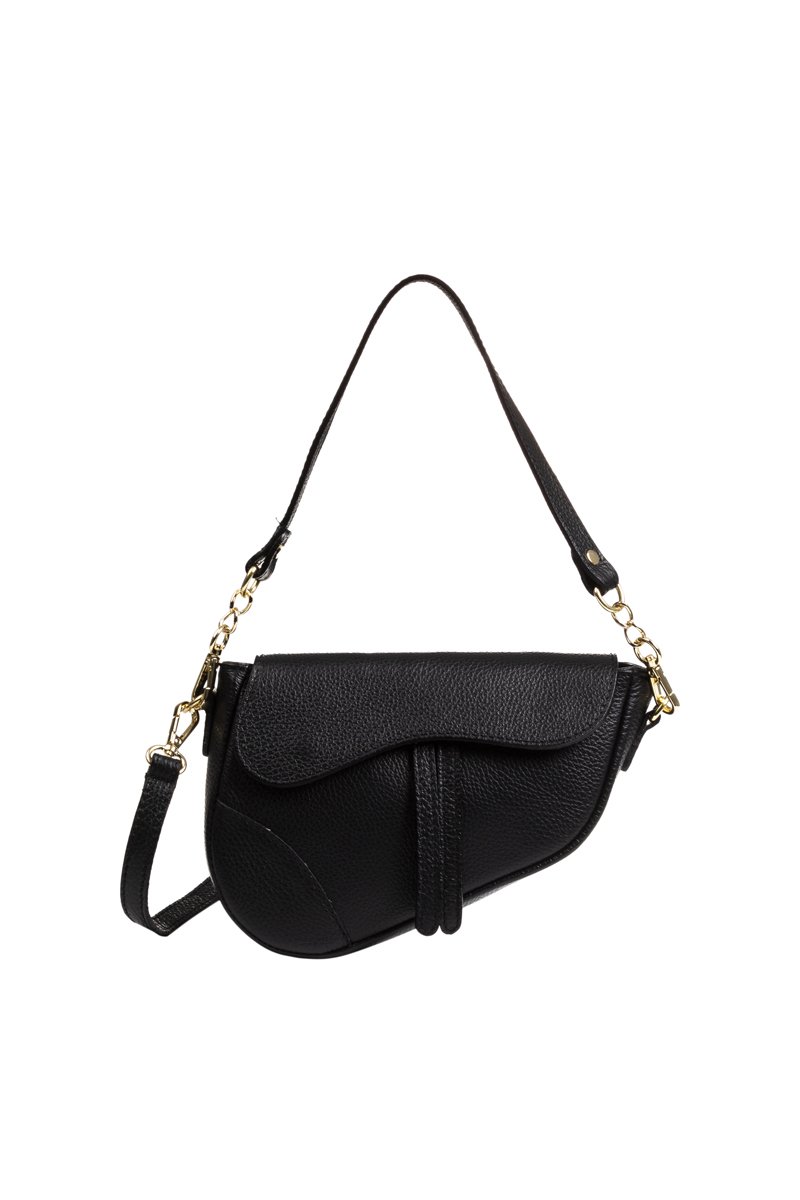 Mala de ombro em couro granulado.