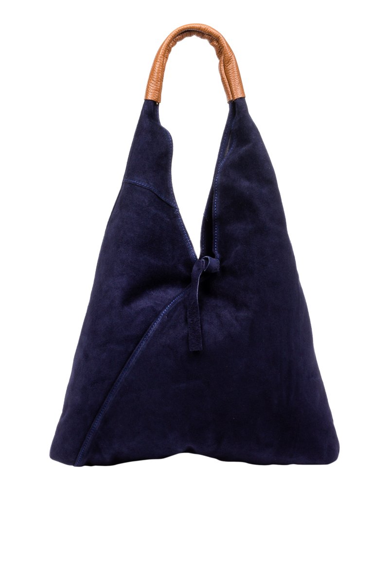 Mala de ombro em nobuck - Azul-marinho e camel -