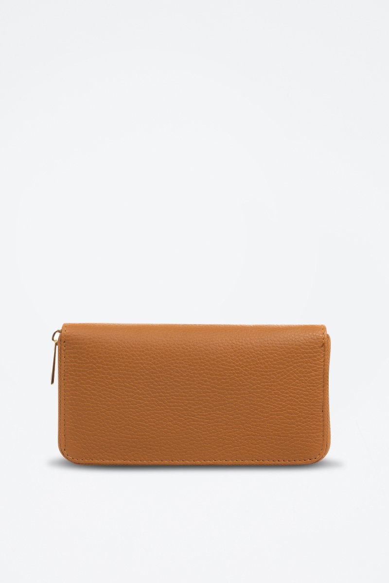 Carteira comprida em couro - Camel - Castanho