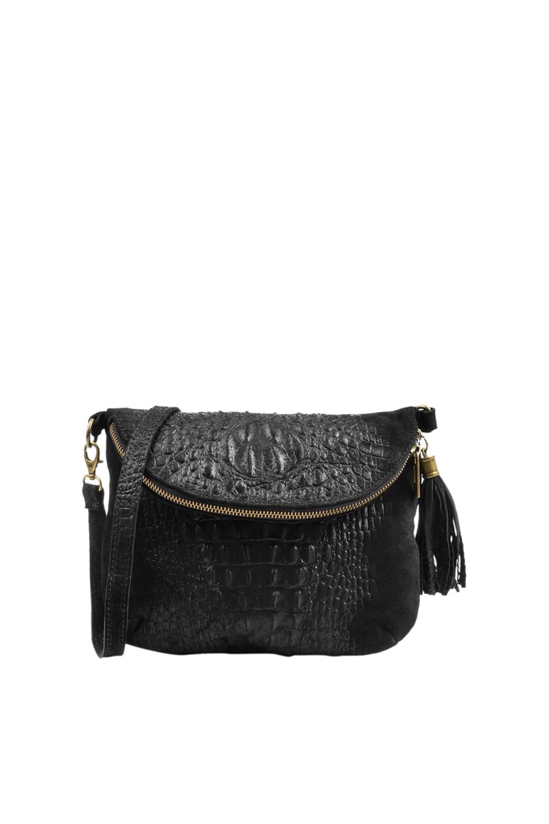 Mala a tiracolo em couro efeito crocodilo e nobuck.