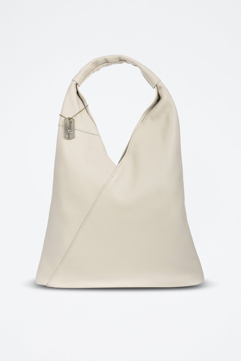 Mala de ombro de couro Agnana - Bege - e