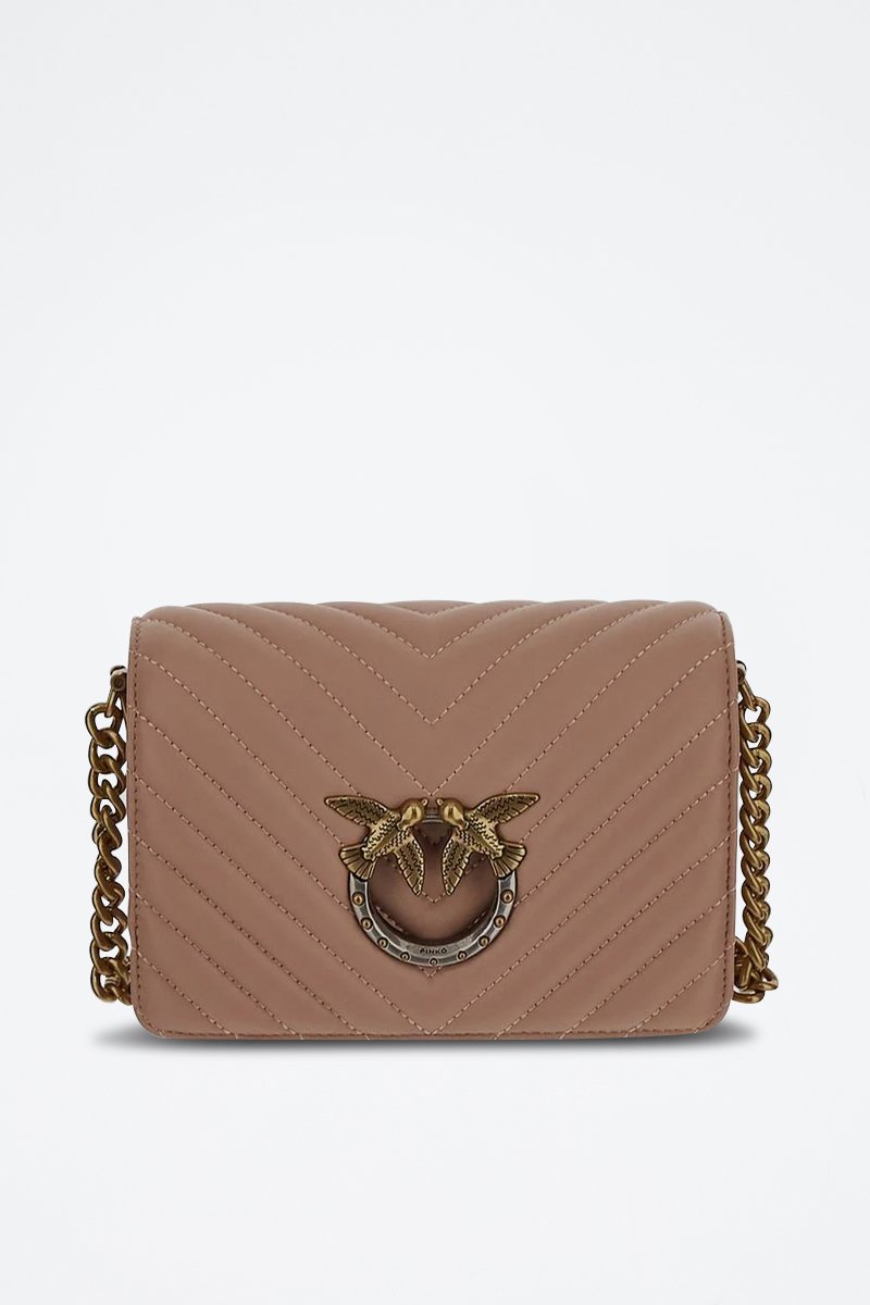 Mala a tiracolo em couro de carneiro Love Click Mini - Rosa