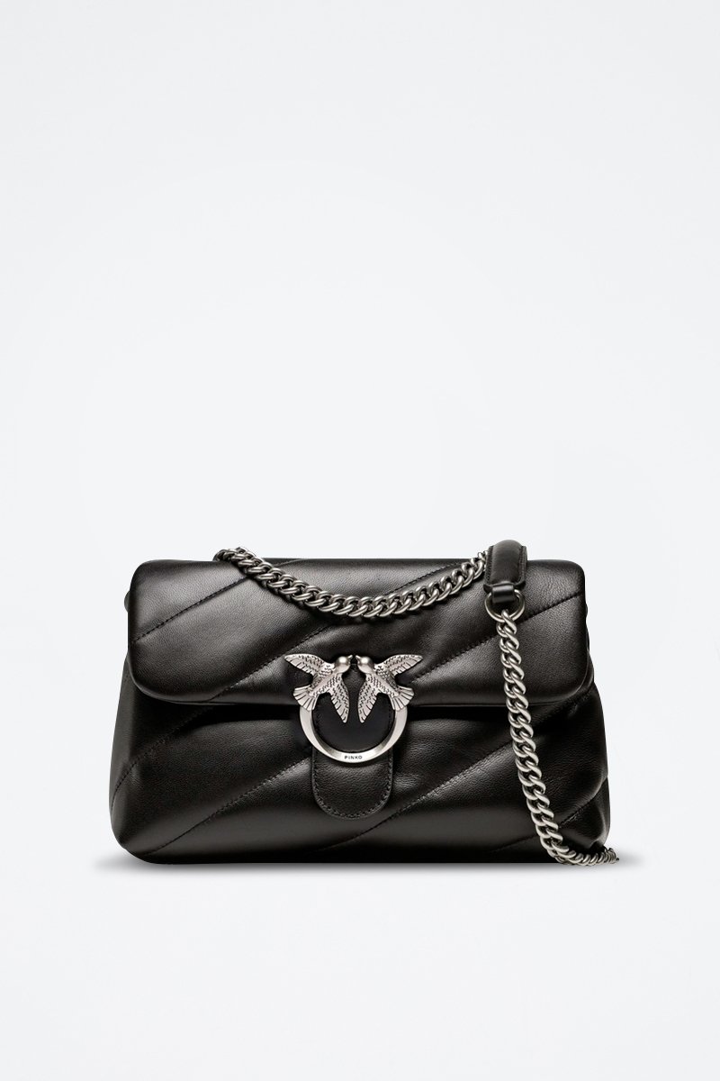 Mala a tiracolo de couro Love Puff - Preto e prateado