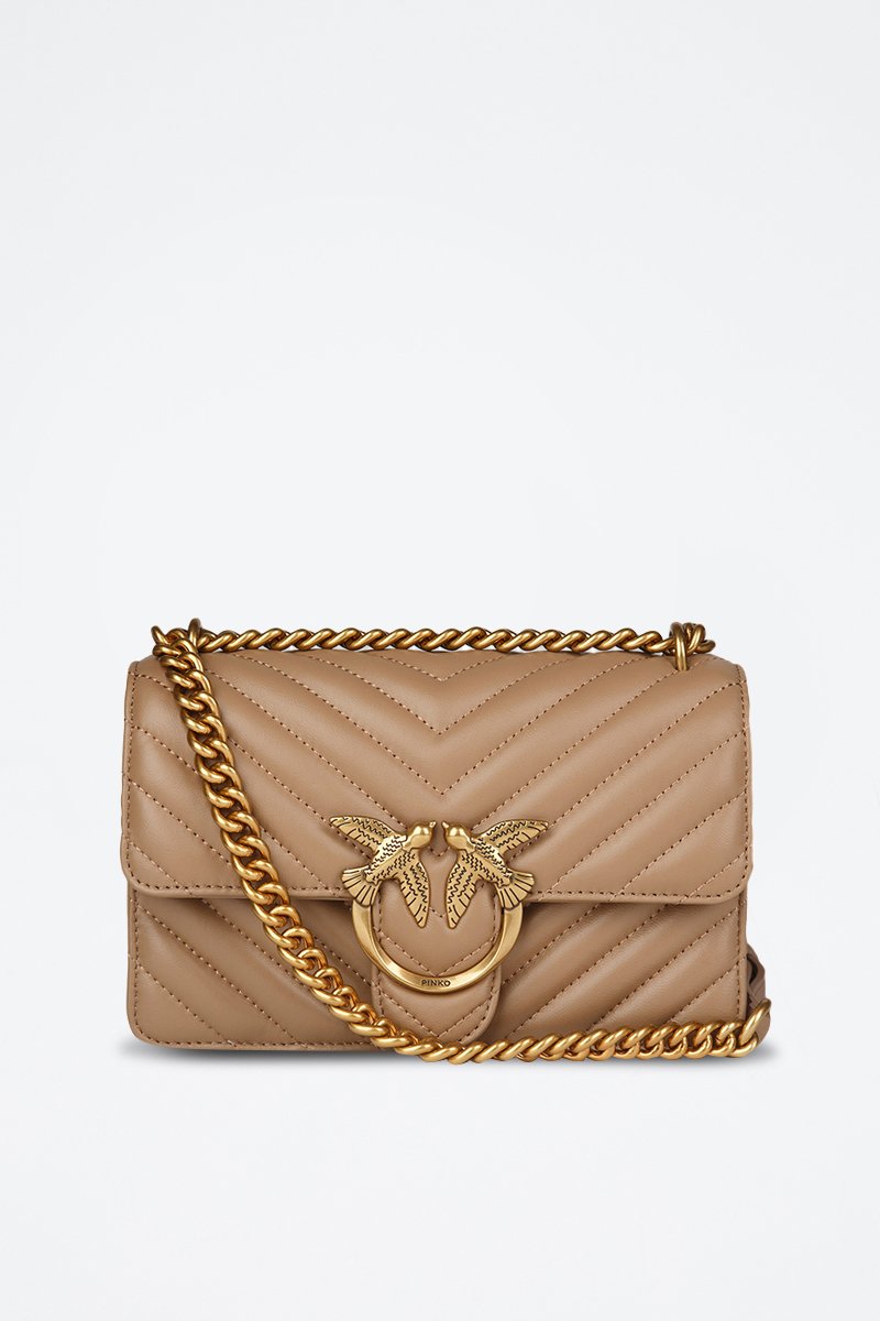 Mala a tiracolo em couro Love One Mini - Castanho-claro