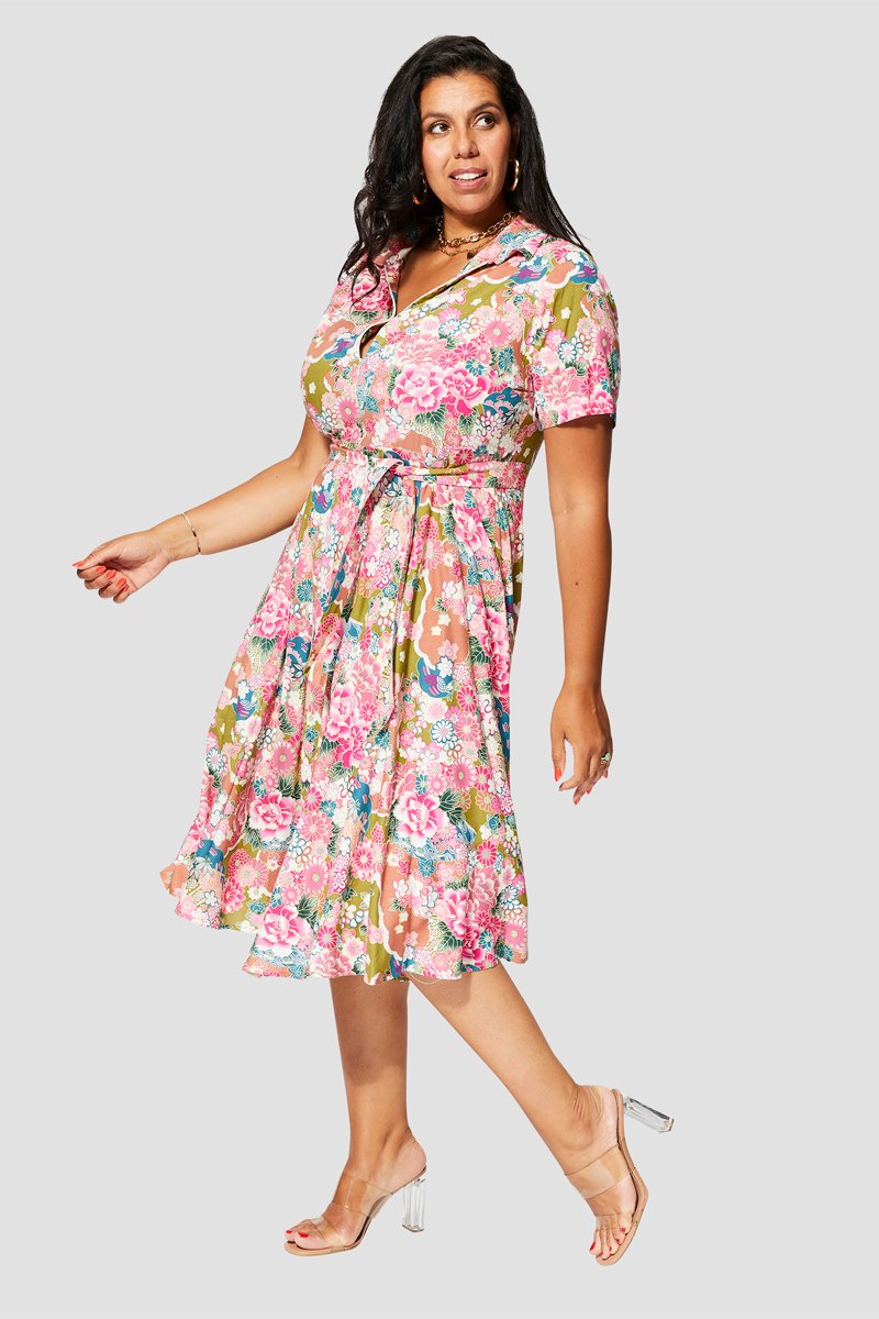 Vestido comprido - Rosa - Branco, verde e amarelo