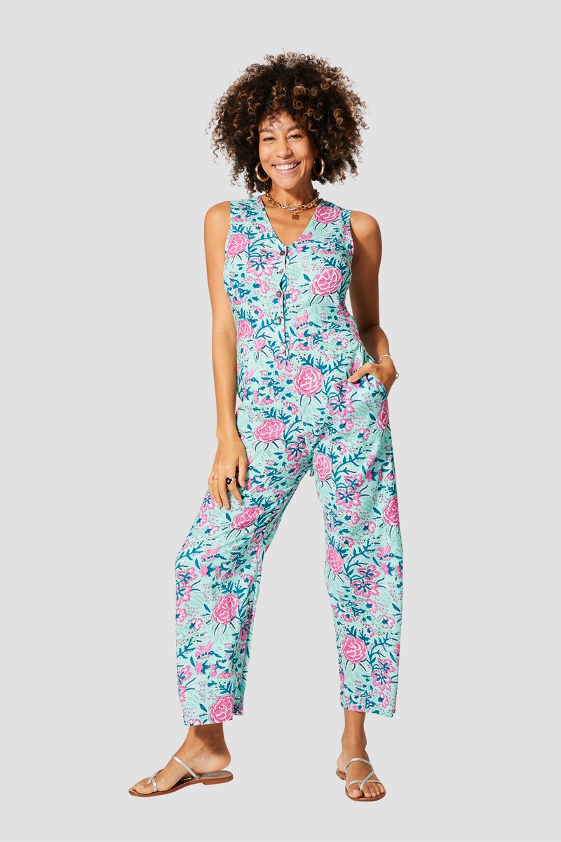 Macacão sem mangas.