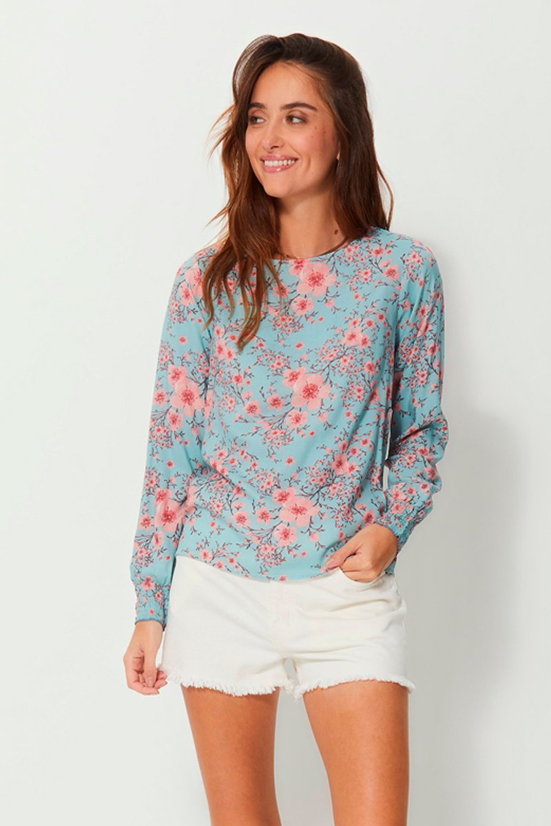 Top - Azul, castanho e rosa