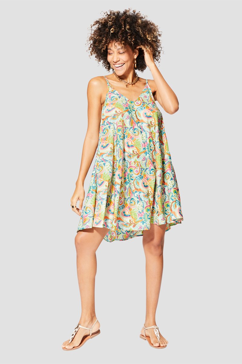 Vestido direito - Turquesa e verde - Azul e verde