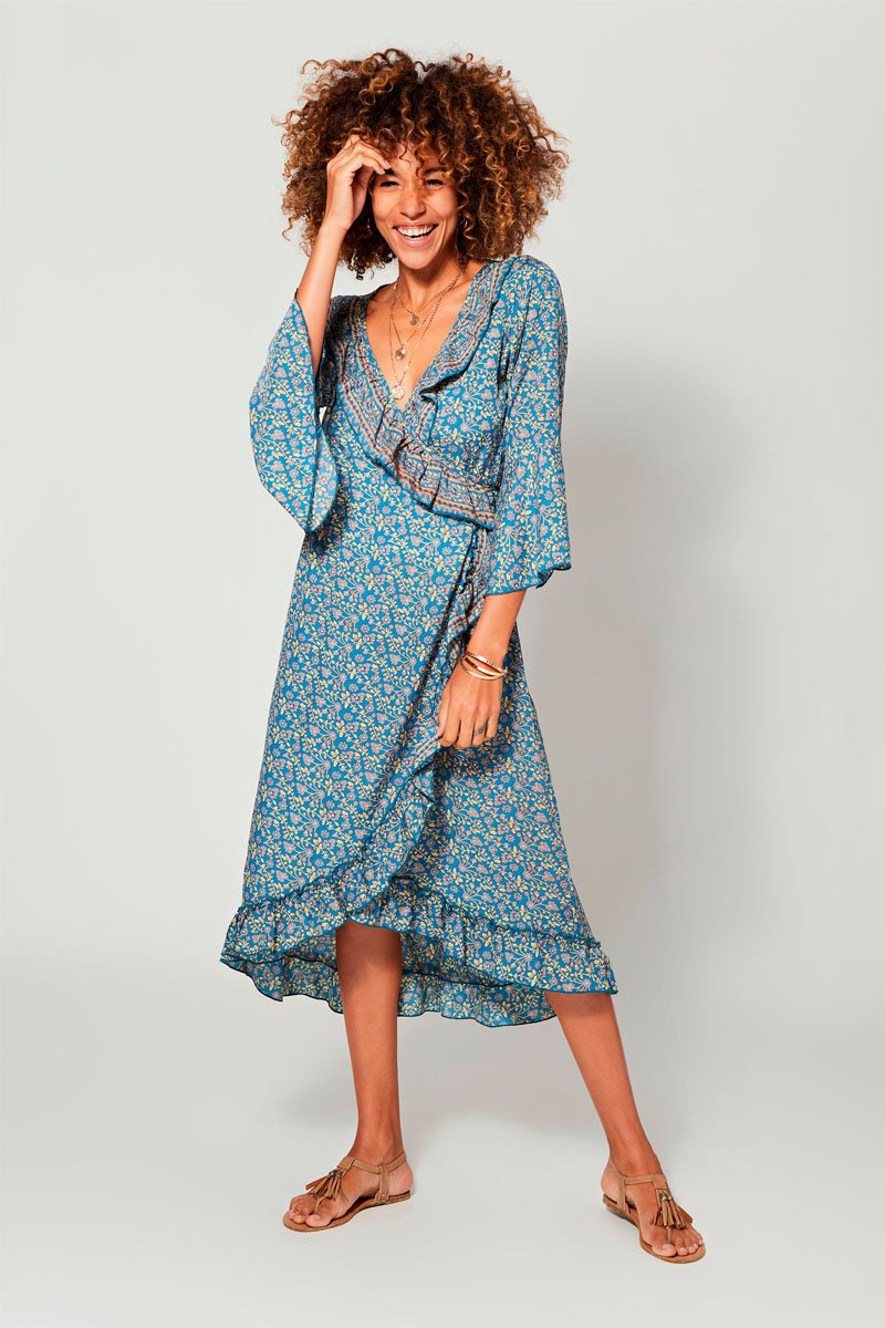 Vestido traçado - Azul, amarelo e cinzento