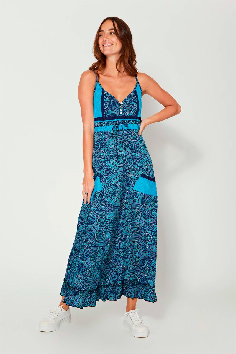 Vestido - Bege, azul e violeta