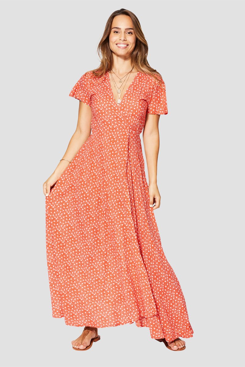 Vestido comprido - Laranja - Branco e laranja