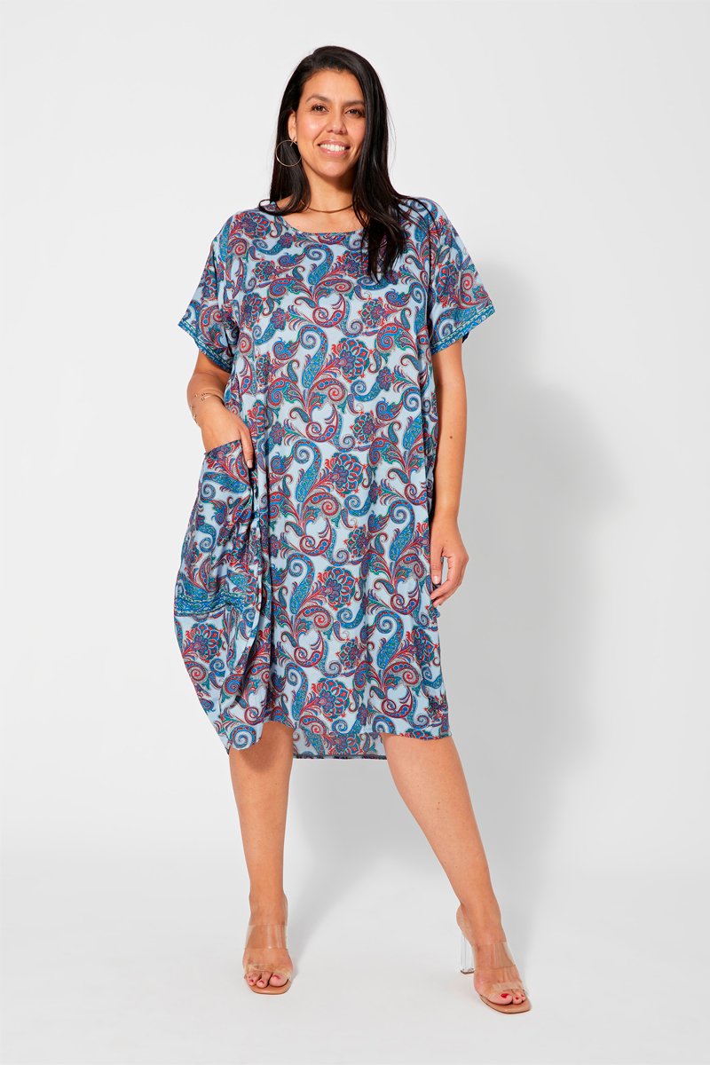 Vestido direito - Vermelho, azul e verde