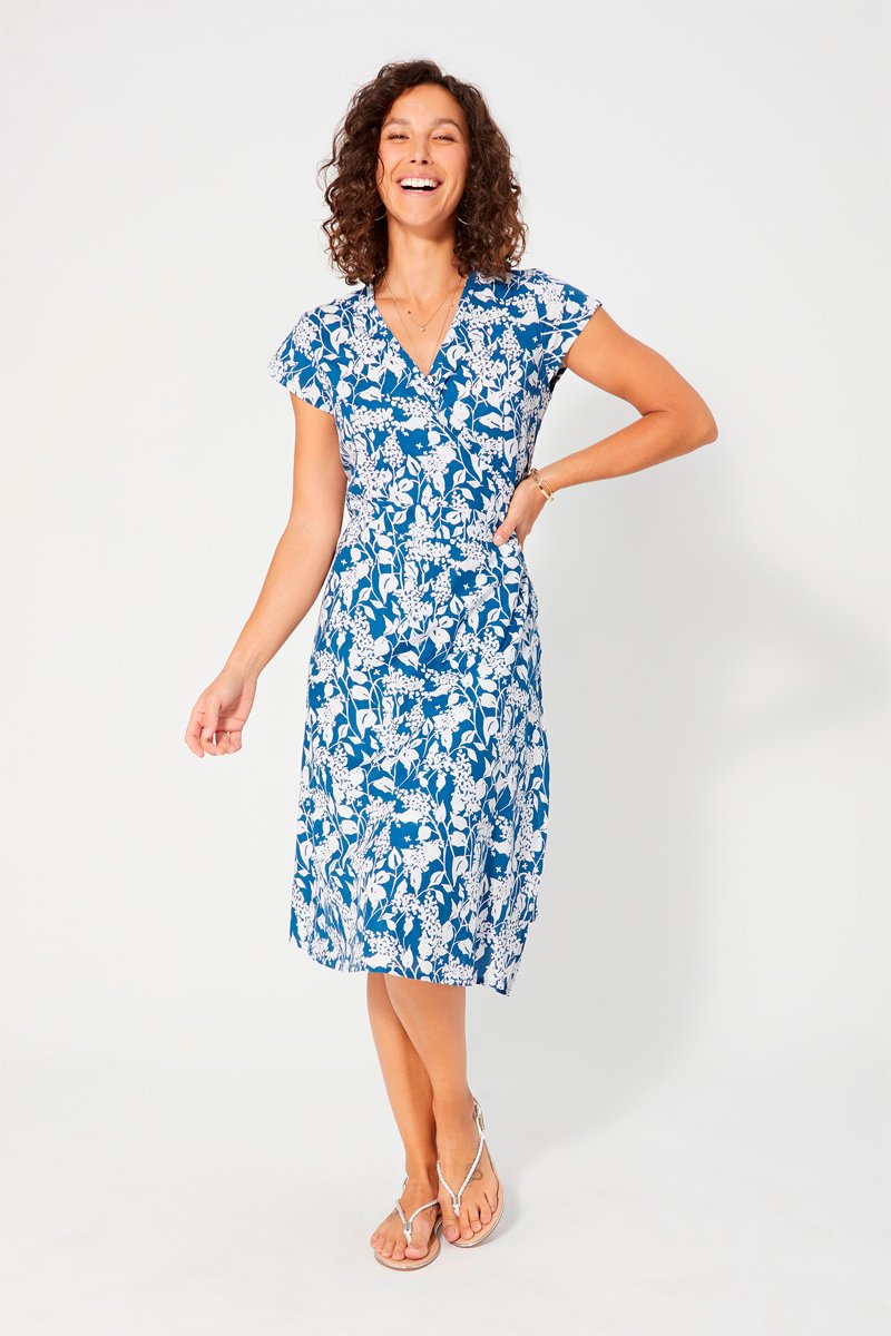 Vestido midi - Branco e azul
