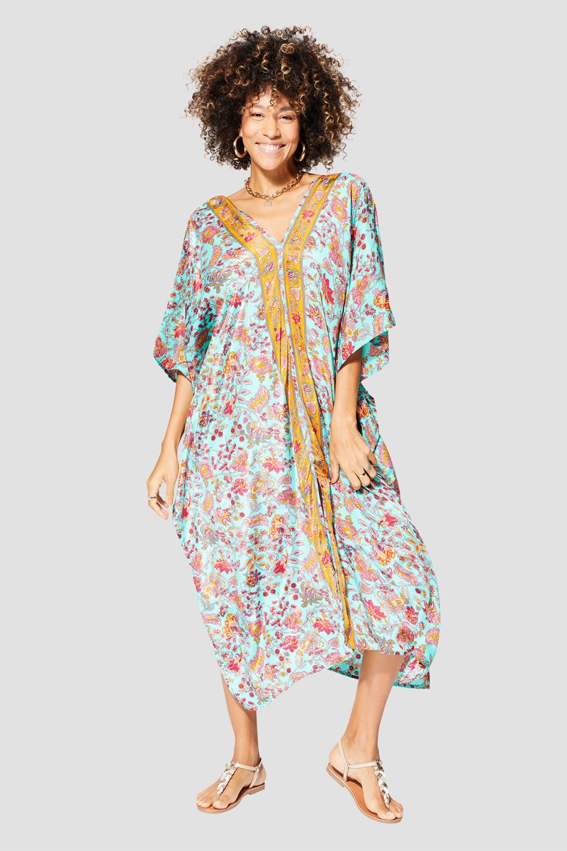 Cafetã - Turquesa e rosa - Azul e rosa