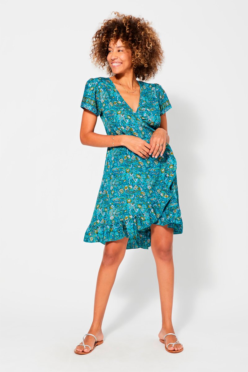 Vestido traçado - Turquesa e verde - Azul e verde