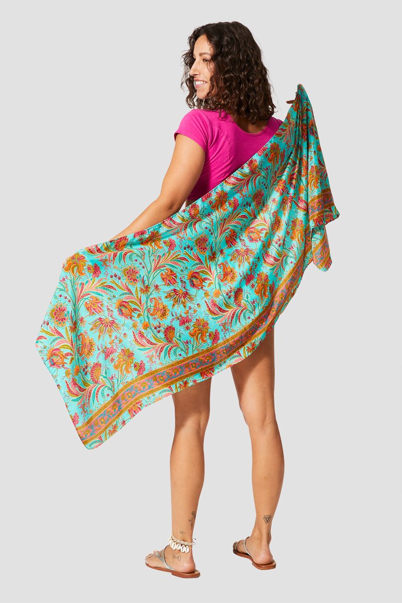 Lenço - Turquesa e rosa - Verde, laranja e rosa