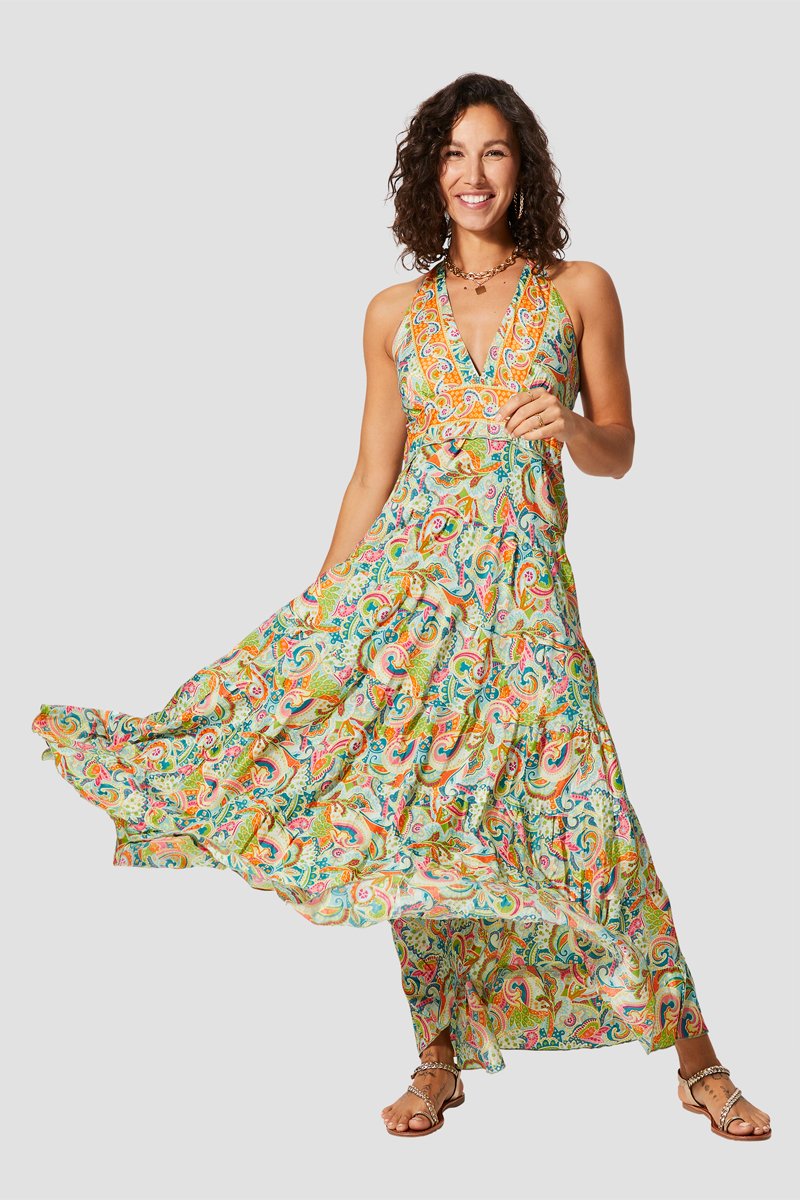 Vestido comprido - Amarelo e turquesa - Azul e amarelo
