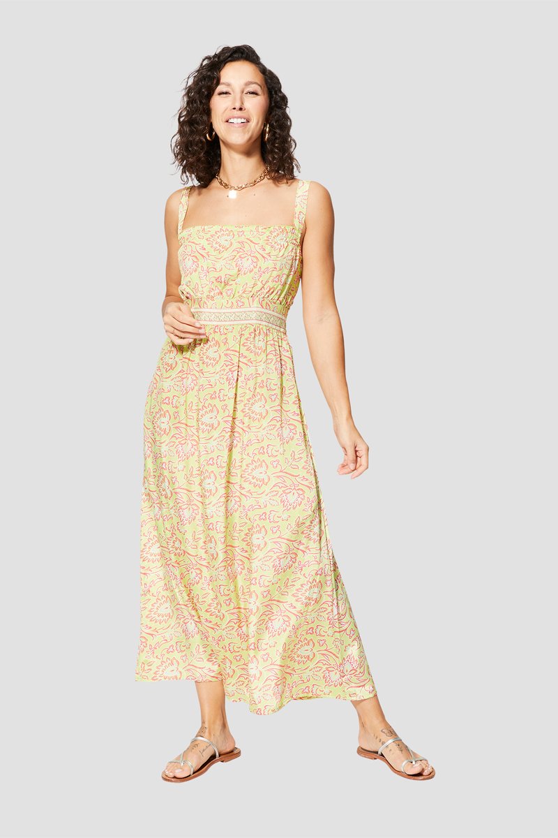 Vestido comprido - Amarelo - Branco, verde e amarelo