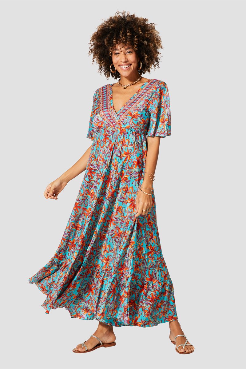 Vestido comprido - Turquesa e vermelho - Vermelho e azul