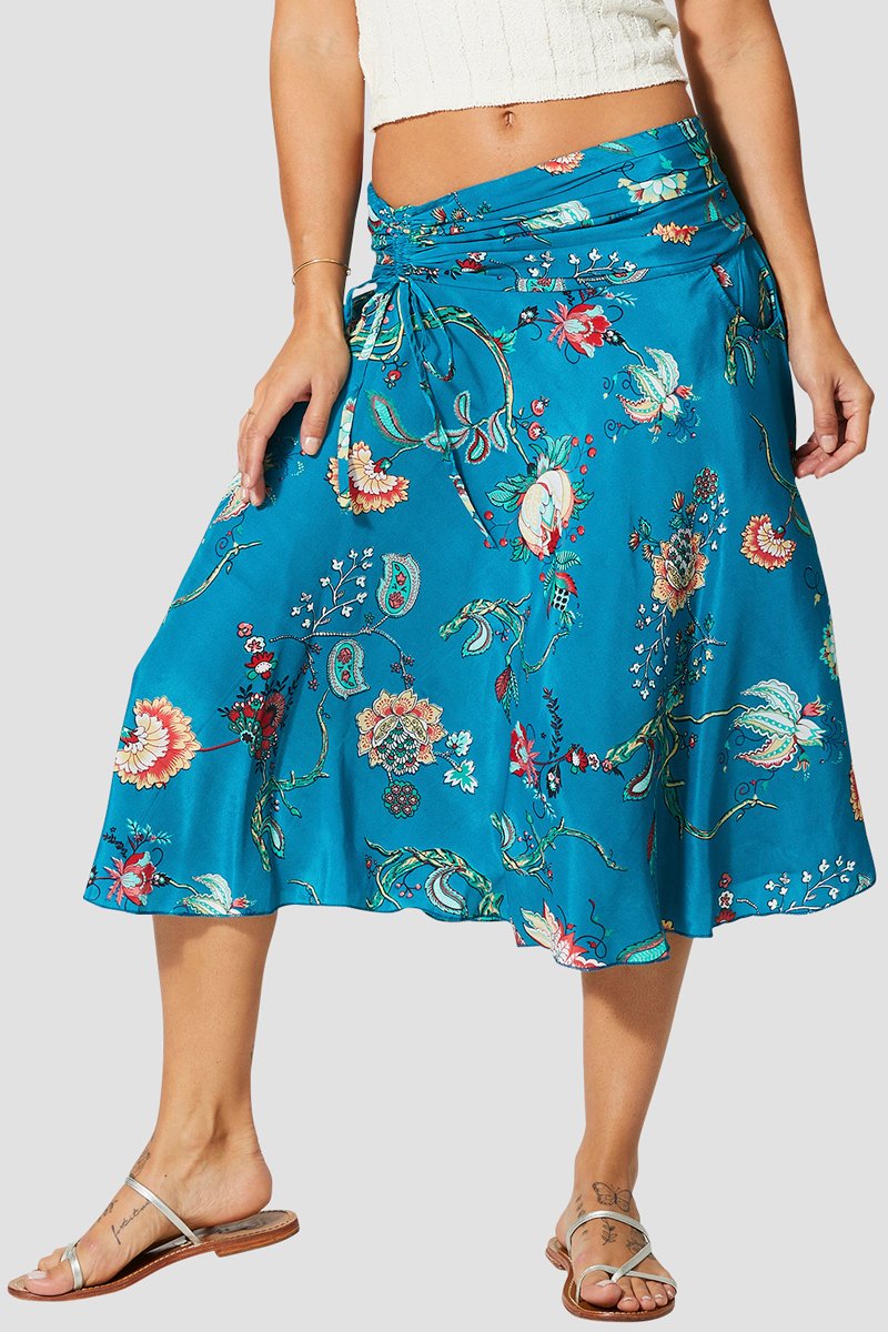Saia midi - Azul-petróleo e rosa - Bege, azul e rosa
