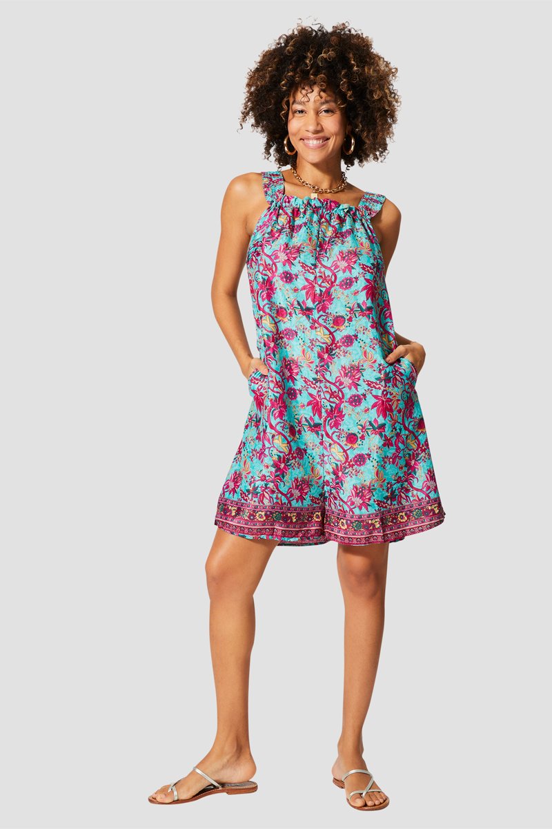Macacão curto sem mangas.