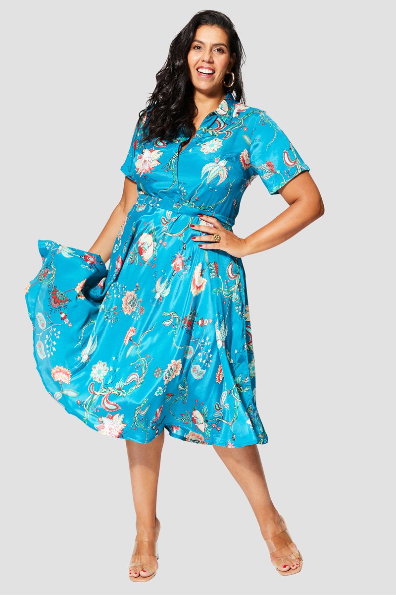 Vestido comprido - Azul e rosa - Branco, azul e verde