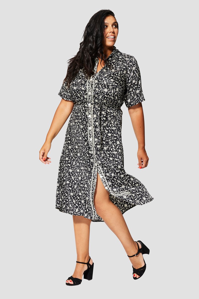 Vestido-camisa - Preto - Branco e preto