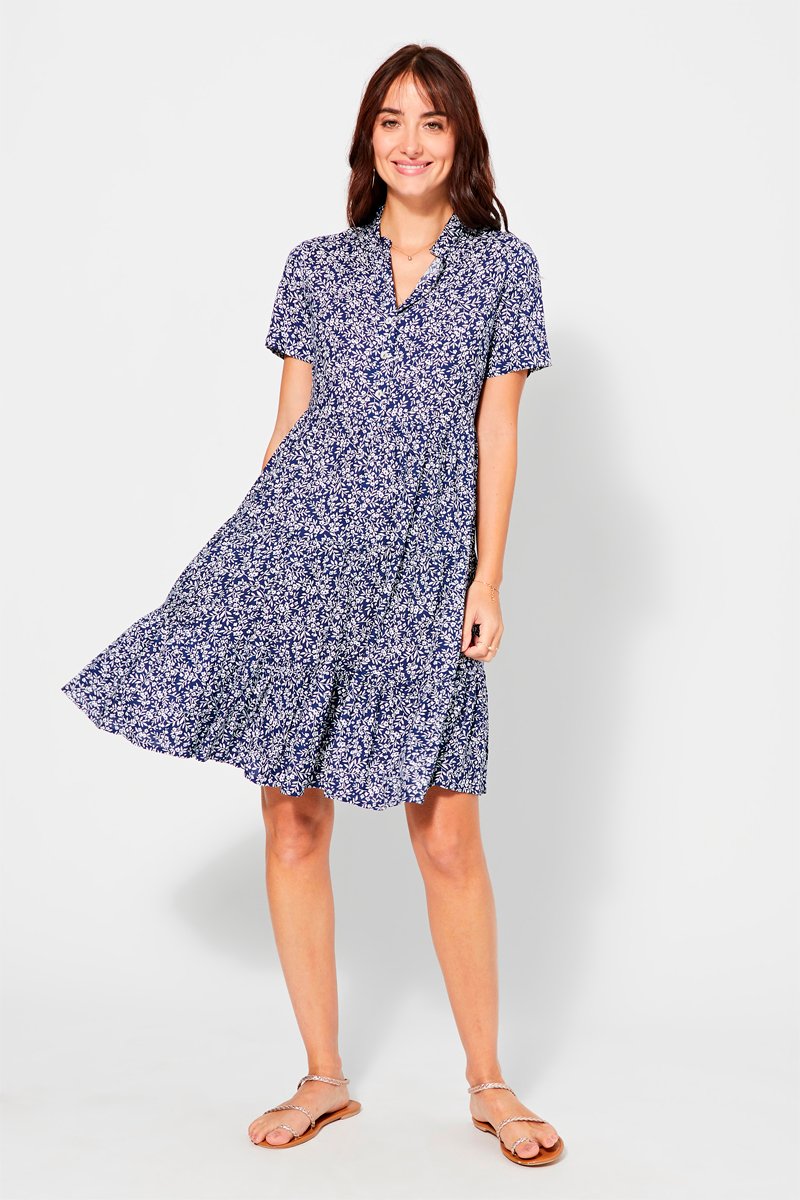 Vestido trapézio - Azul-marinho - Branco e azul