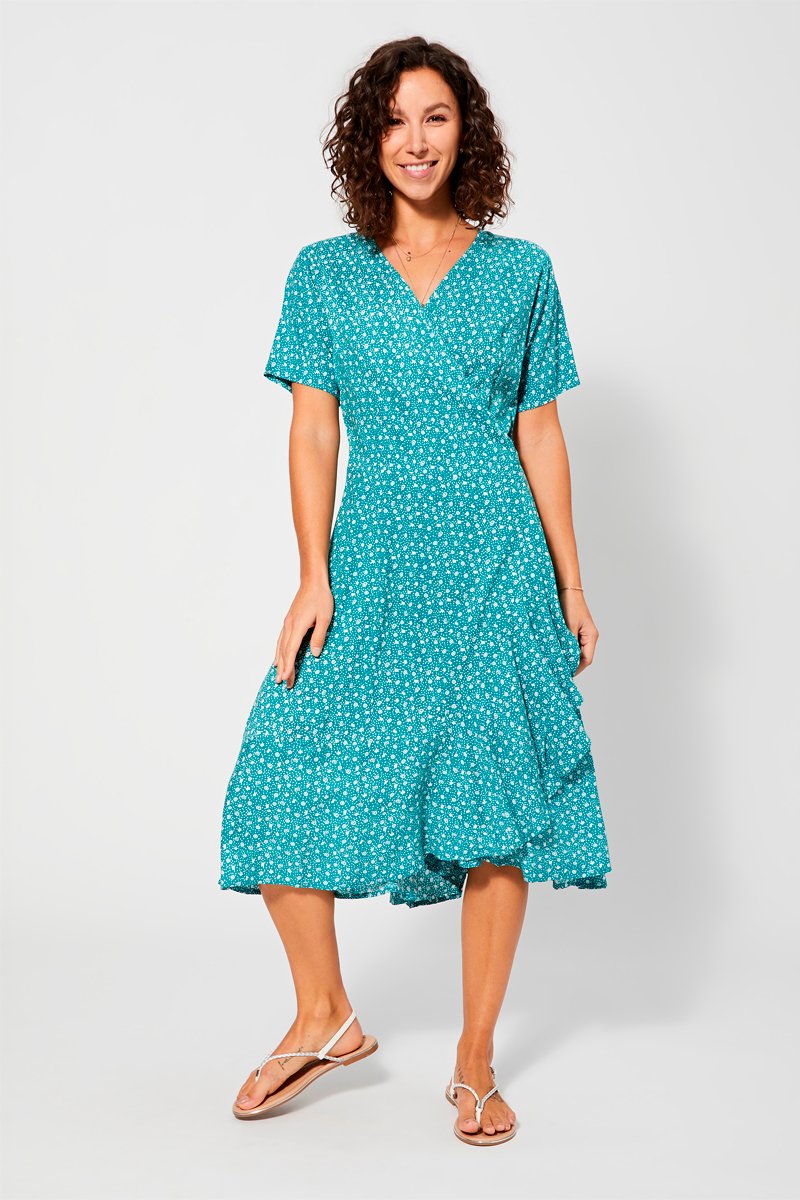 Vestido traçado - Turquesa - Branco e azul