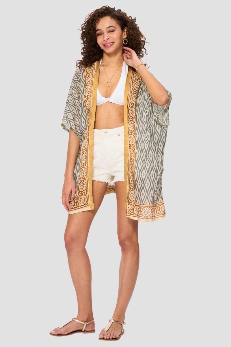 Quimono - Bege e cinzento - Bege, castanho e cinzento