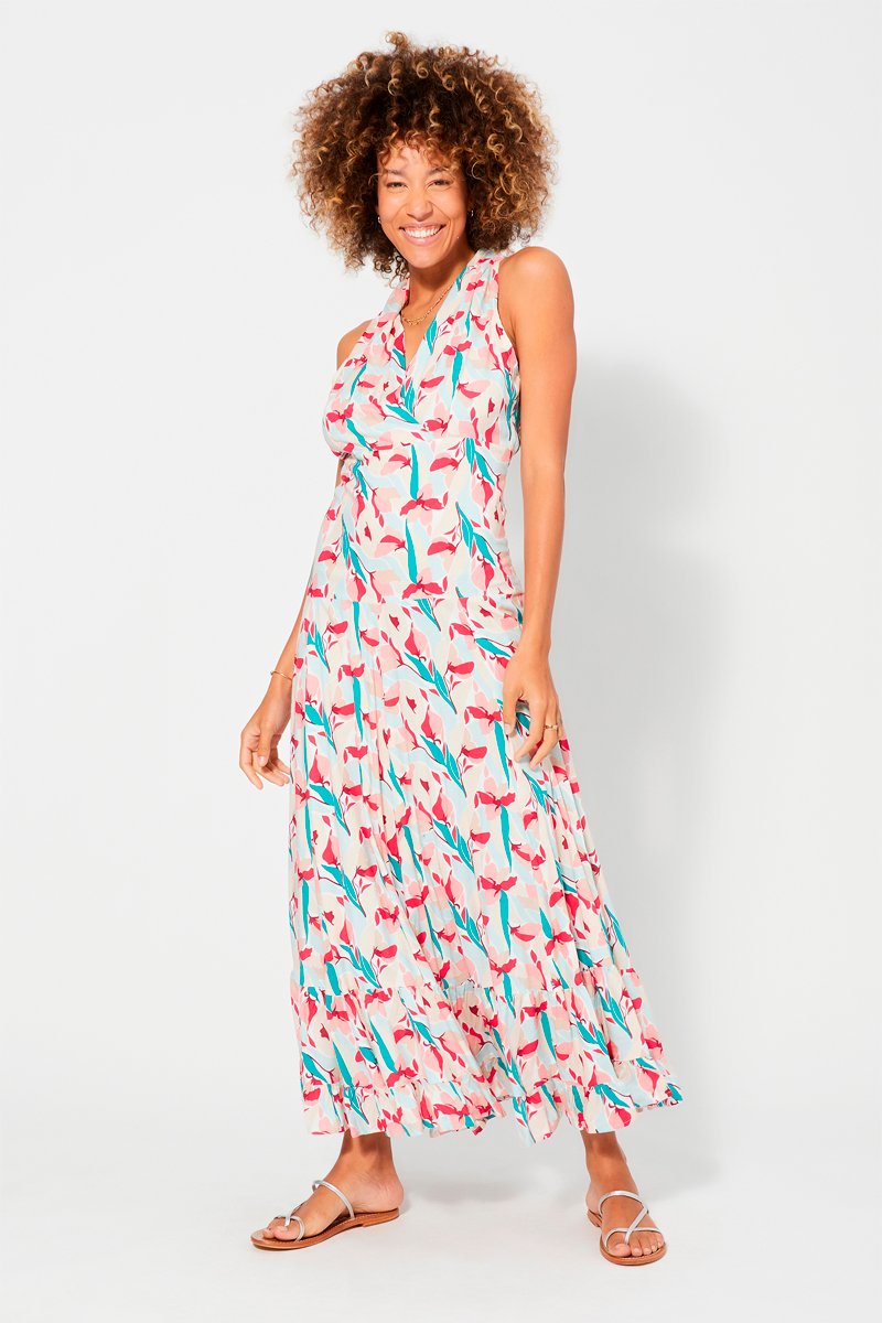 Vestido comprido - Bege - Bege, vermelho e azul