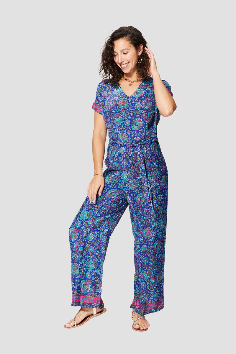 Macacão - Azul-marinho e rosa - Bege, azul e rosa