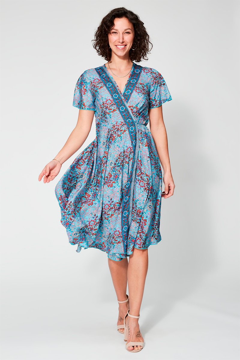 Vestido traçado - Azul-claro e vermelho - Vermelho, azul e rosa
