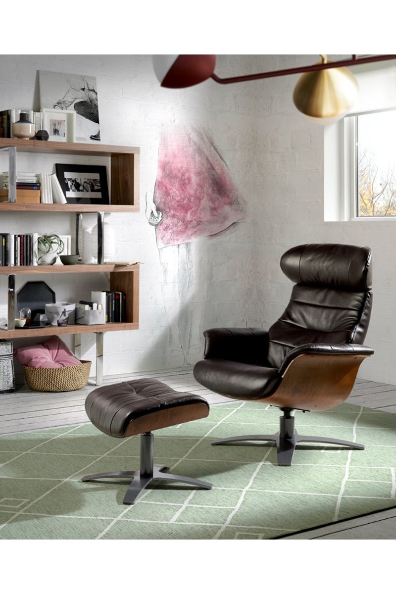 Apoio para os pés em couro.