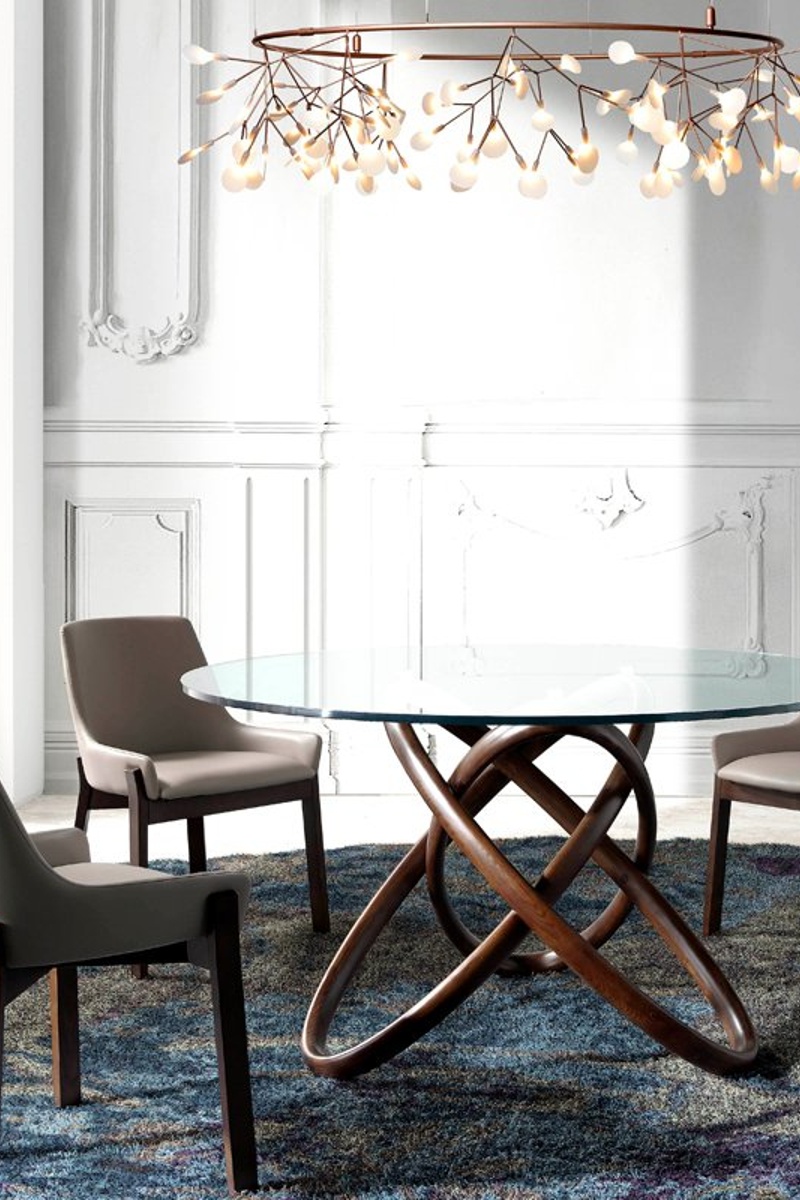 Mesa para refeição em freixo e vidro - 140 x 140 x 75 cm