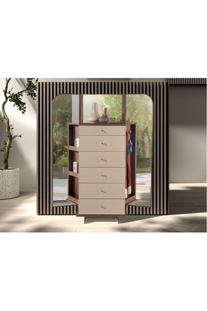 Móvel 2 portas em madeira banhada em nogueira - 65 x 168 x 42 cm