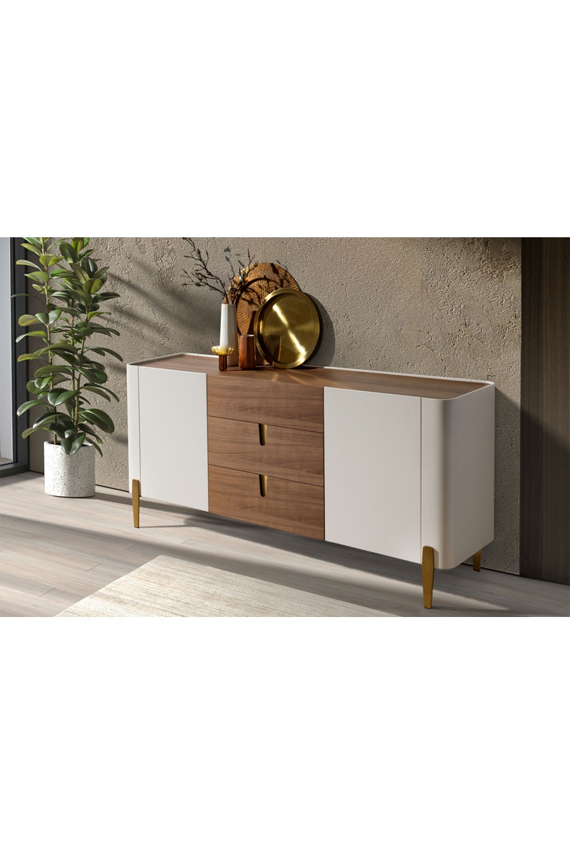 Aparador. Estrutura em madeira de nogueira e painéis de fibras.